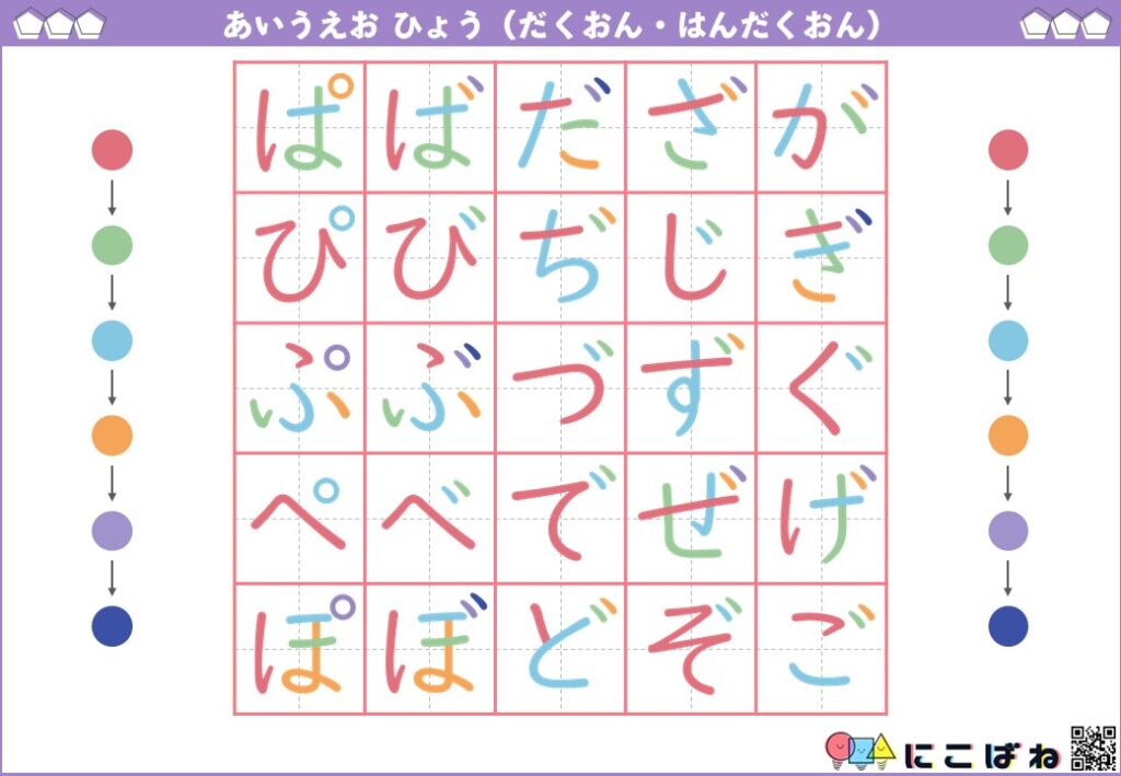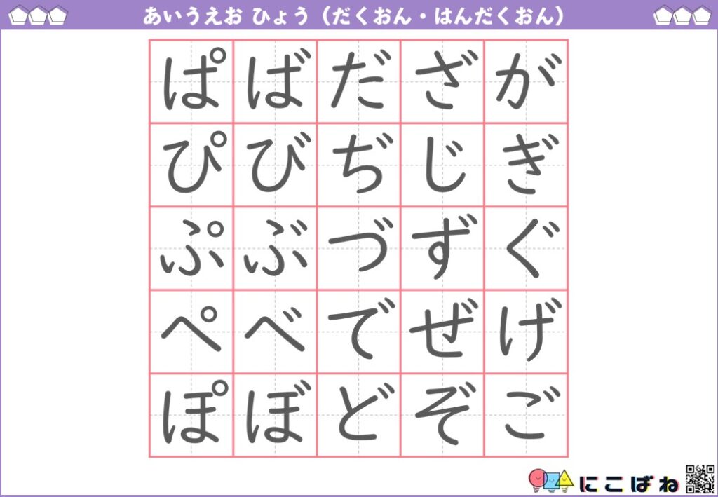 ひらがなの世界を広げよう!シンプルな濁音・半濁音ひらがな表