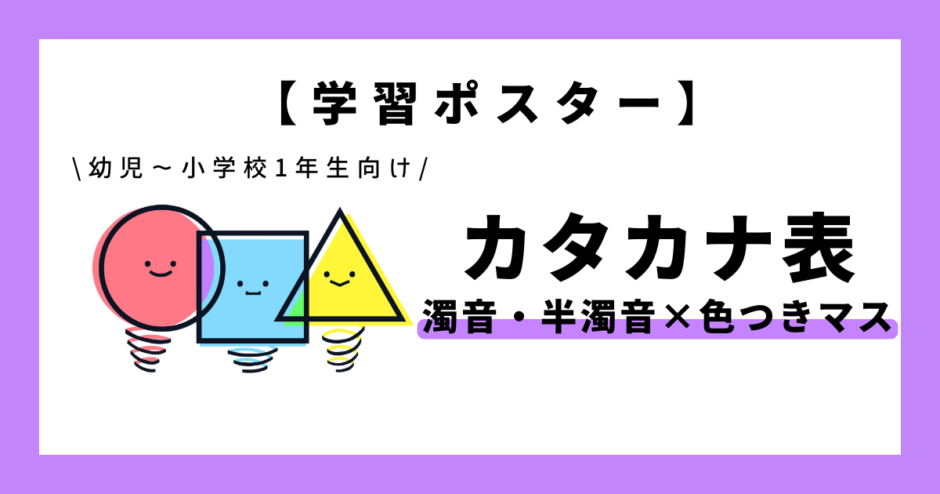 - 濁音・半濁音のカタカナを一覧で確認できる学習ポスターです。