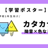 - 文字の形や大きさの違いに気づきやすく、カタカナの書き分けや音のまとまりを理解しやすい学習ポスター