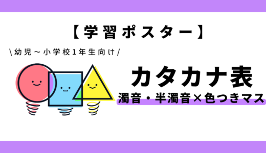 - 文字の形や大きさの違いに気づきやすく、カタカナの書き分けや音のまとまりを理解しやすい学習ポスター