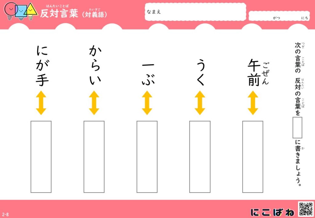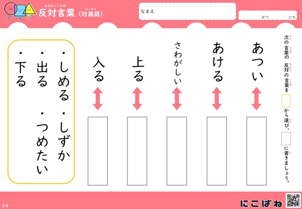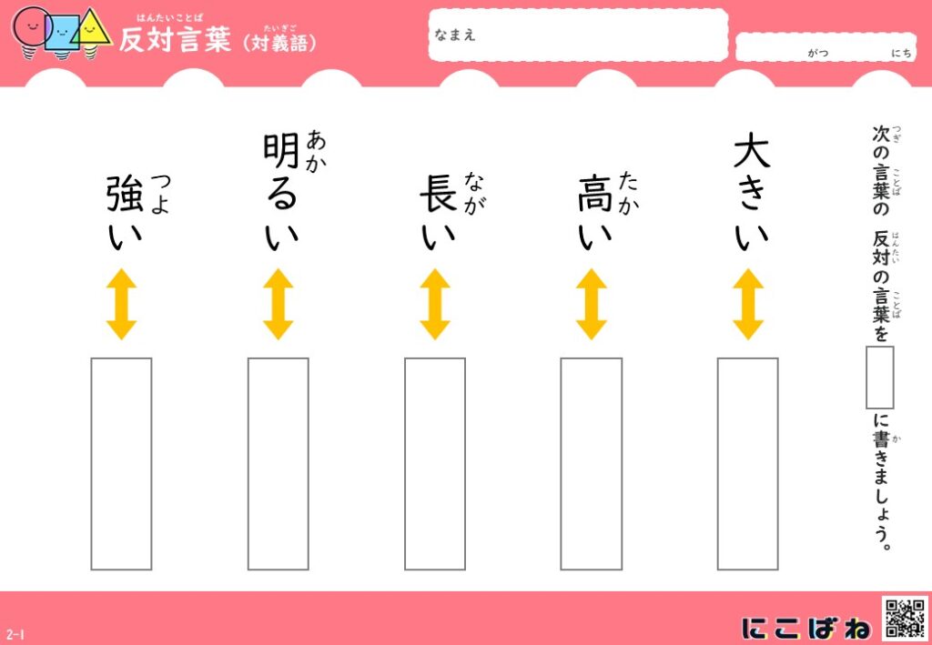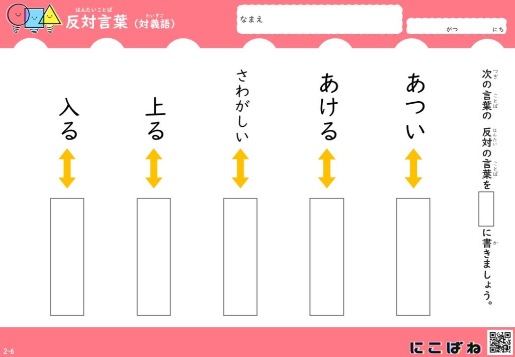 ことばの意味を深く知るうえで、「反対語」はとてもよい入り口になります。とはいえ、最初から正確に理解して答えるのは、なかなかむずかしいものです。