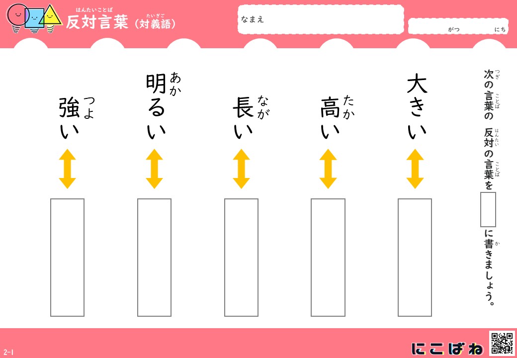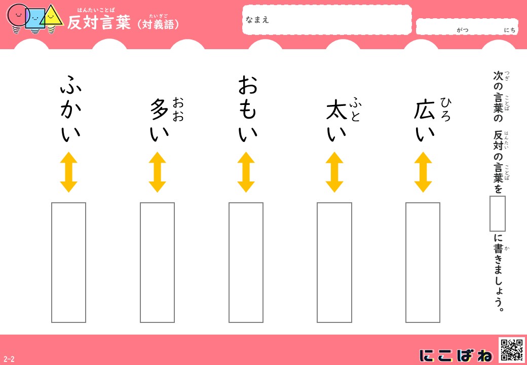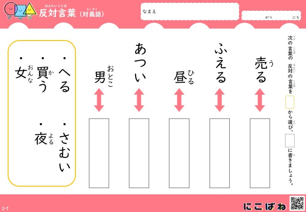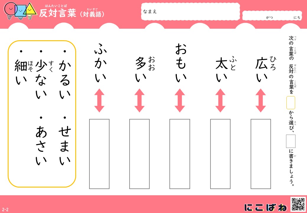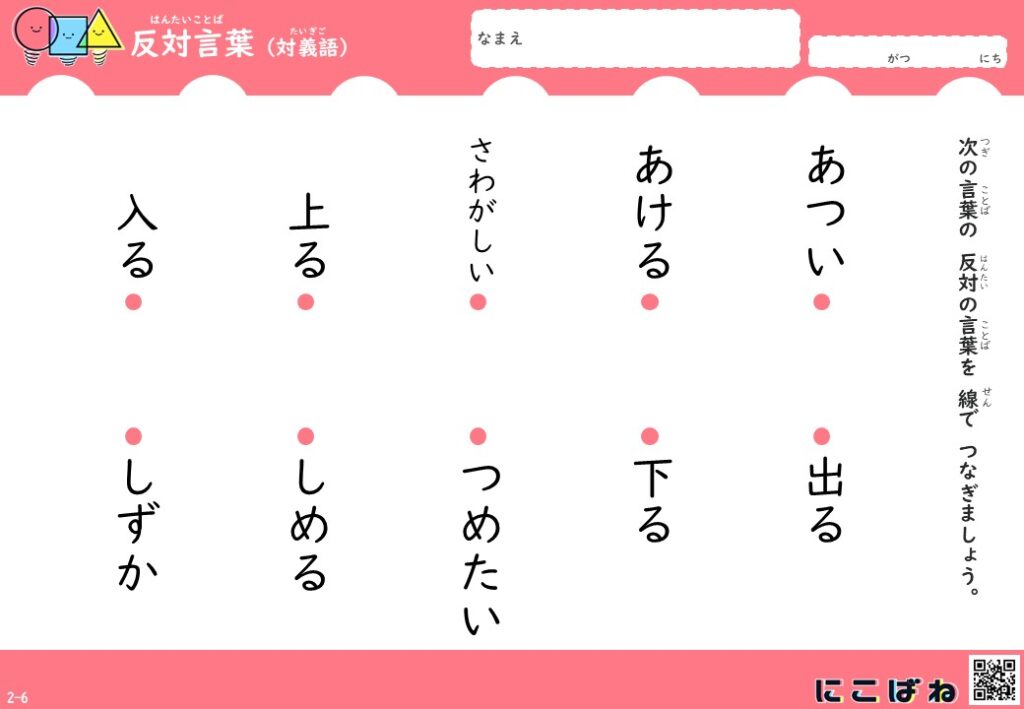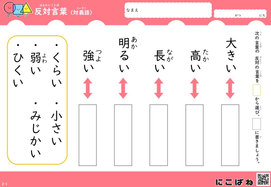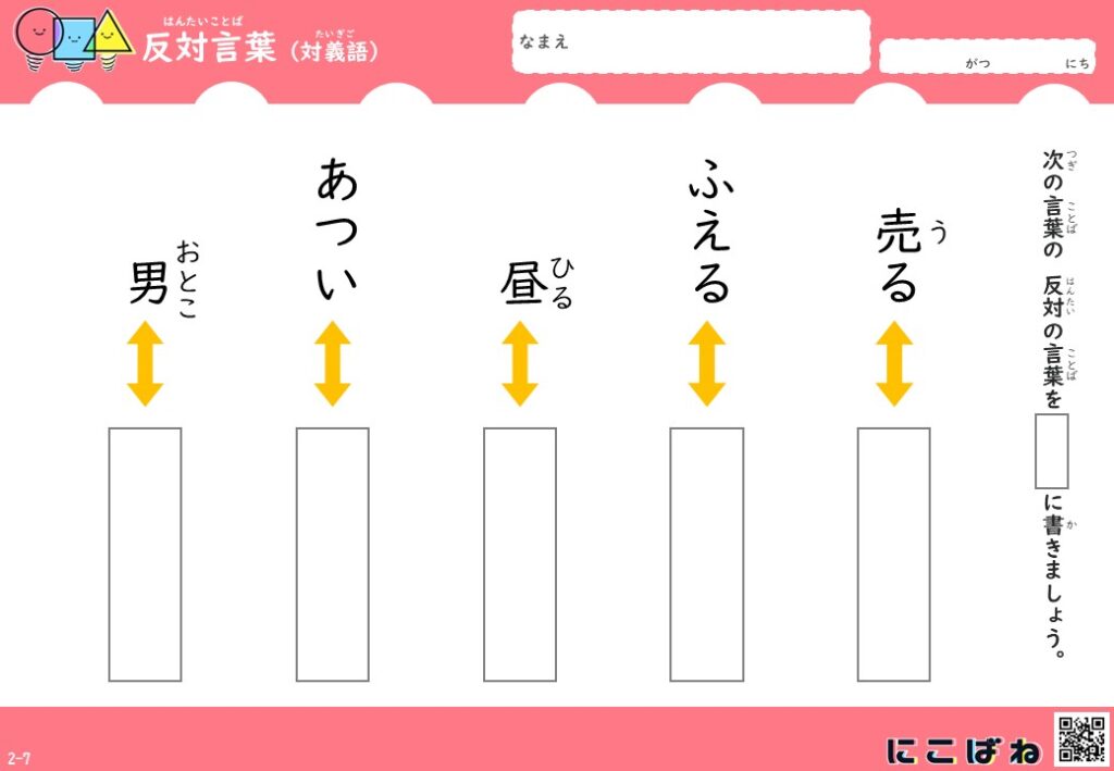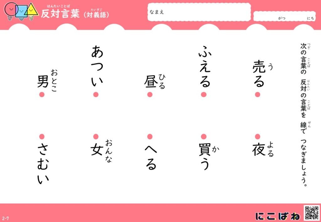 - 反対語の意味関係を直感的に理解する力を育てます。