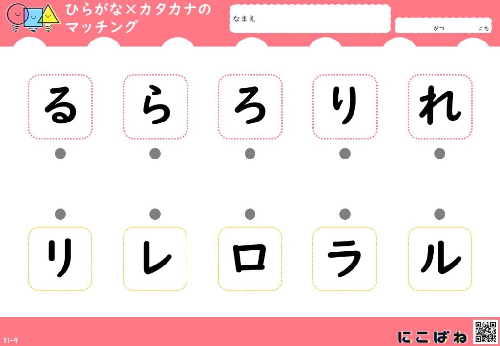 - ひらがなとカタカナの対応関係を理解し、文字の読み分け・識別力を高めることをねらいとしています。