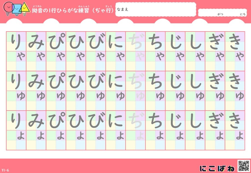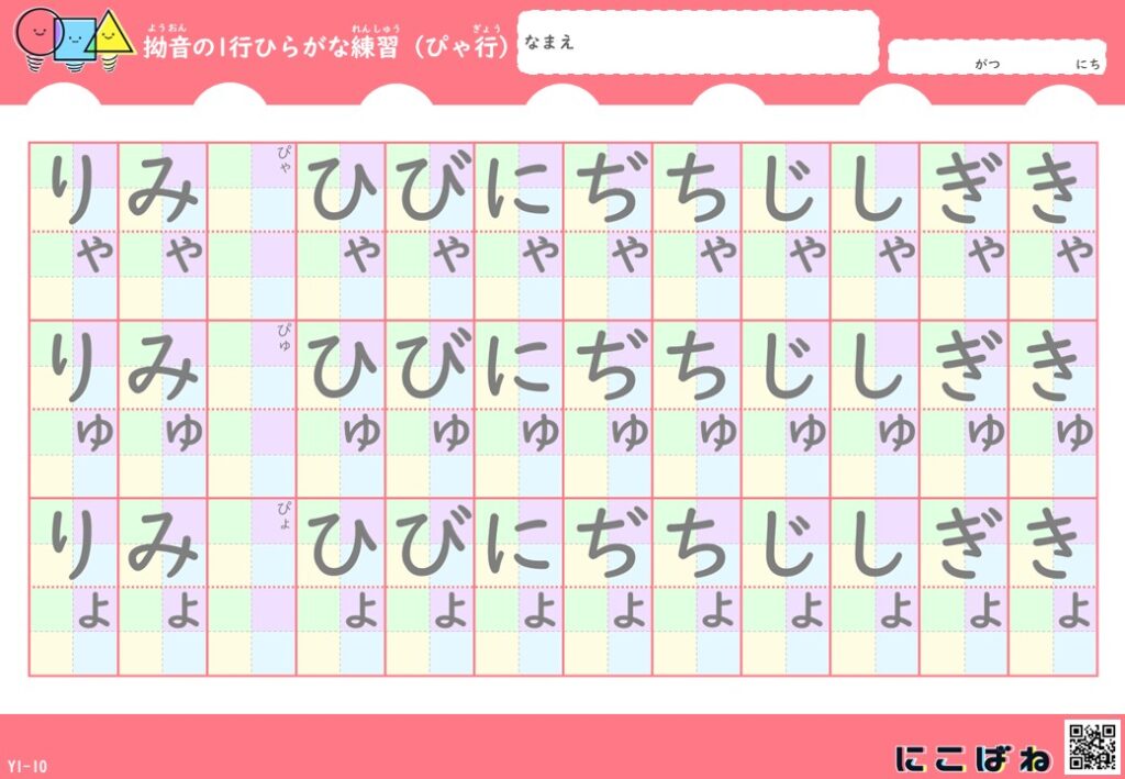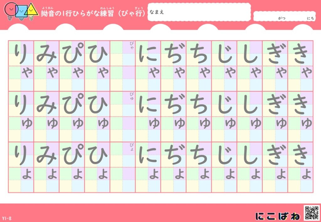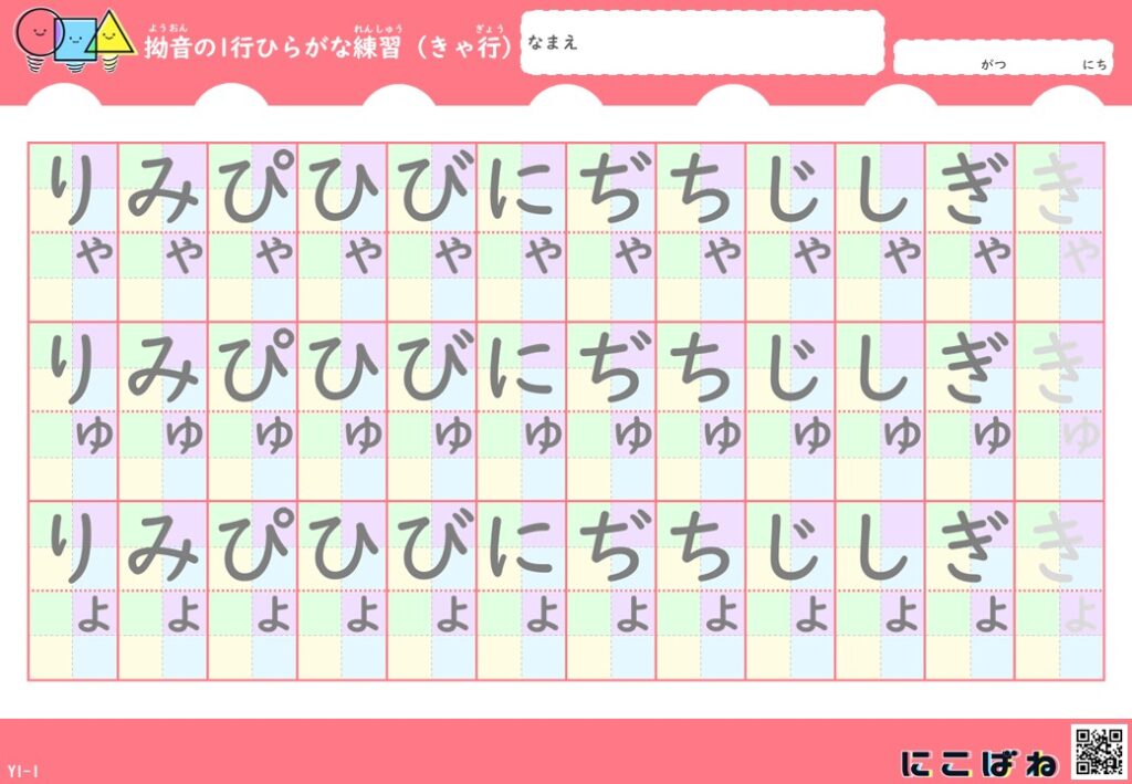 拗音のひらがなを無理なく学びたい場面で取り入れやすいプリントです。