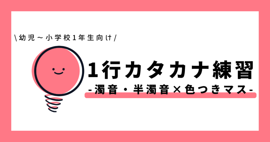 濁音・半濁音の1行カタカナ練習(色つきマス×なぞり)プリントはこちら