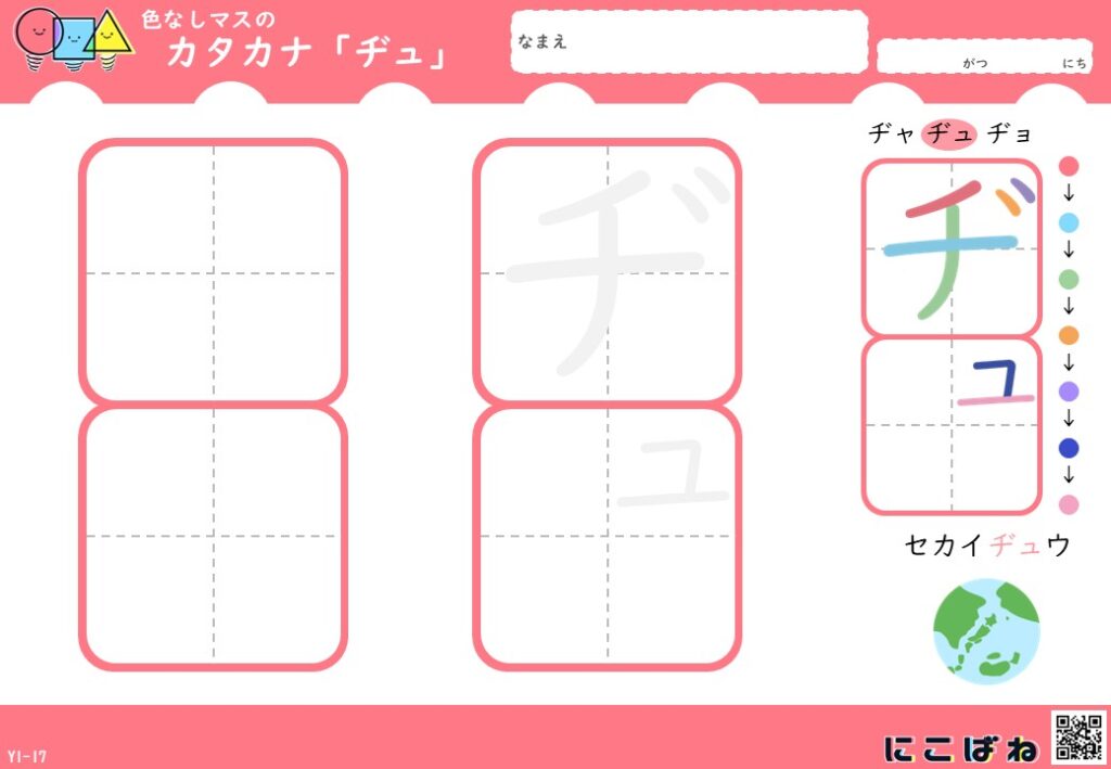 ひらがなをもっとじっくり練習したいときは、清音や濁音・半濁音の色なしマスのカタカナプリントもおすすめです。