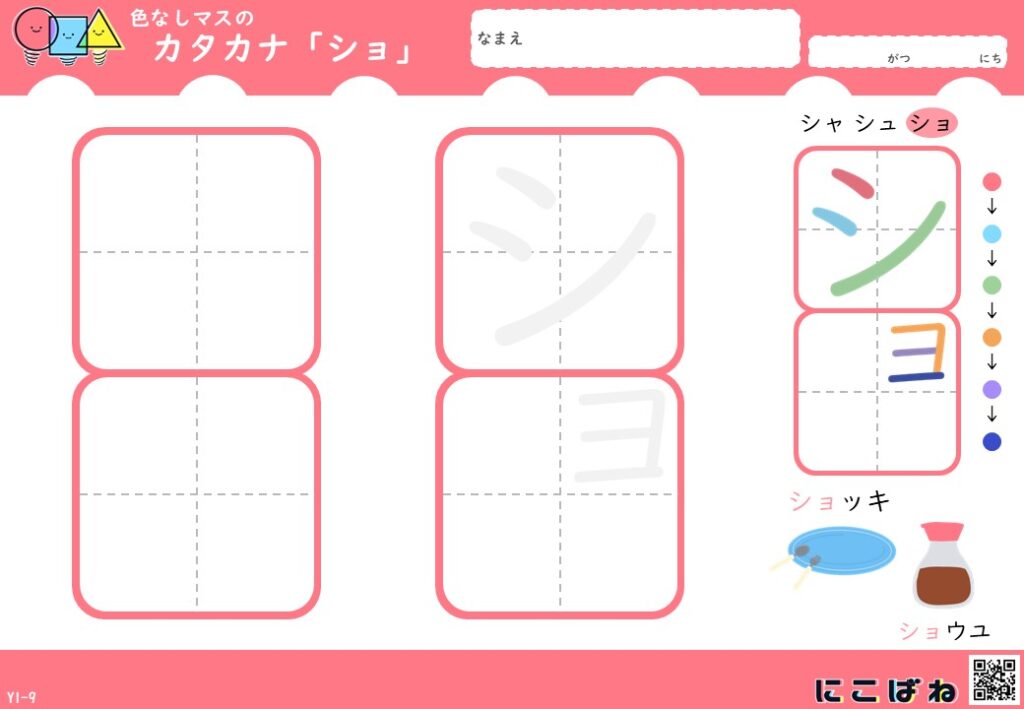 - 拗音(キャ・シュ・チョなど)のすべてのカタカナを、色なしマスでじっくり練習できるシリーズ