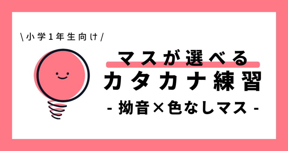 - 装飾をおさえた白マスなので、拗音カタカナの大きさ・形・位置にしっかり集中できる環境を作っています。