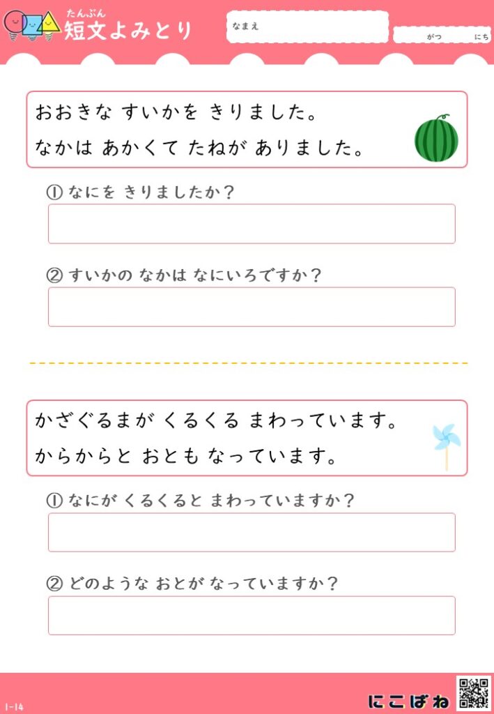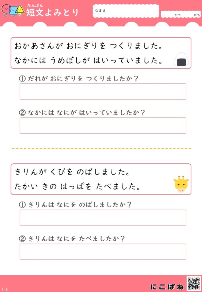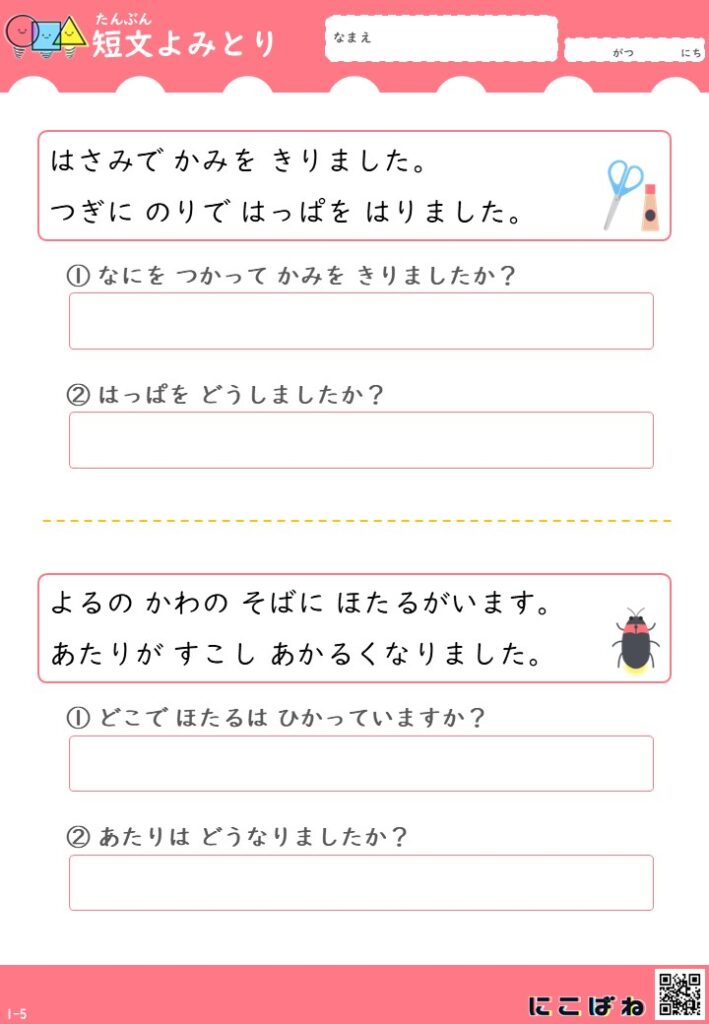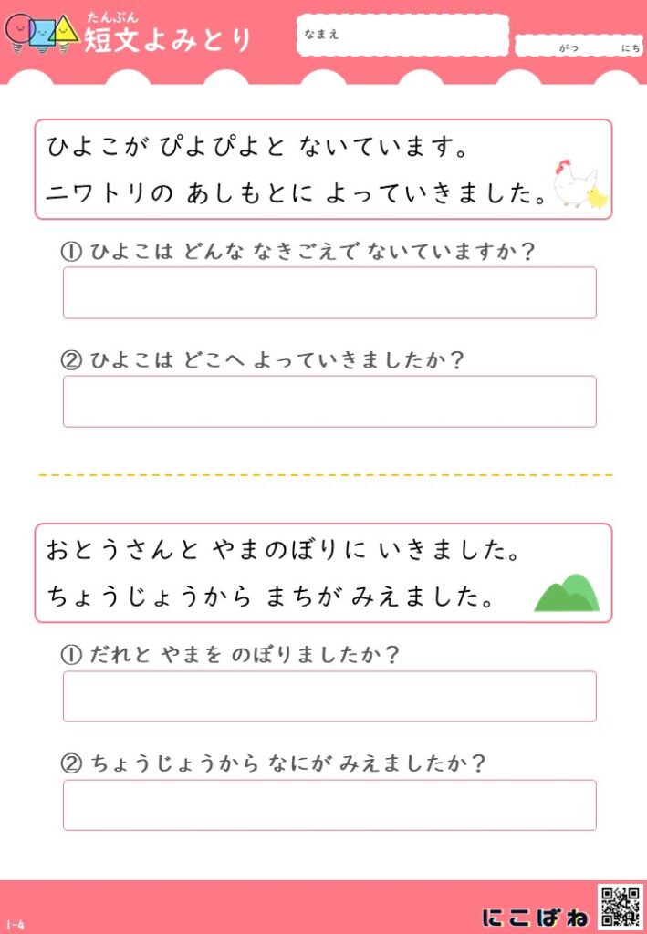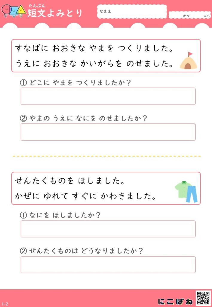 短文よみとり(2文バージョン)|小学1年生向け