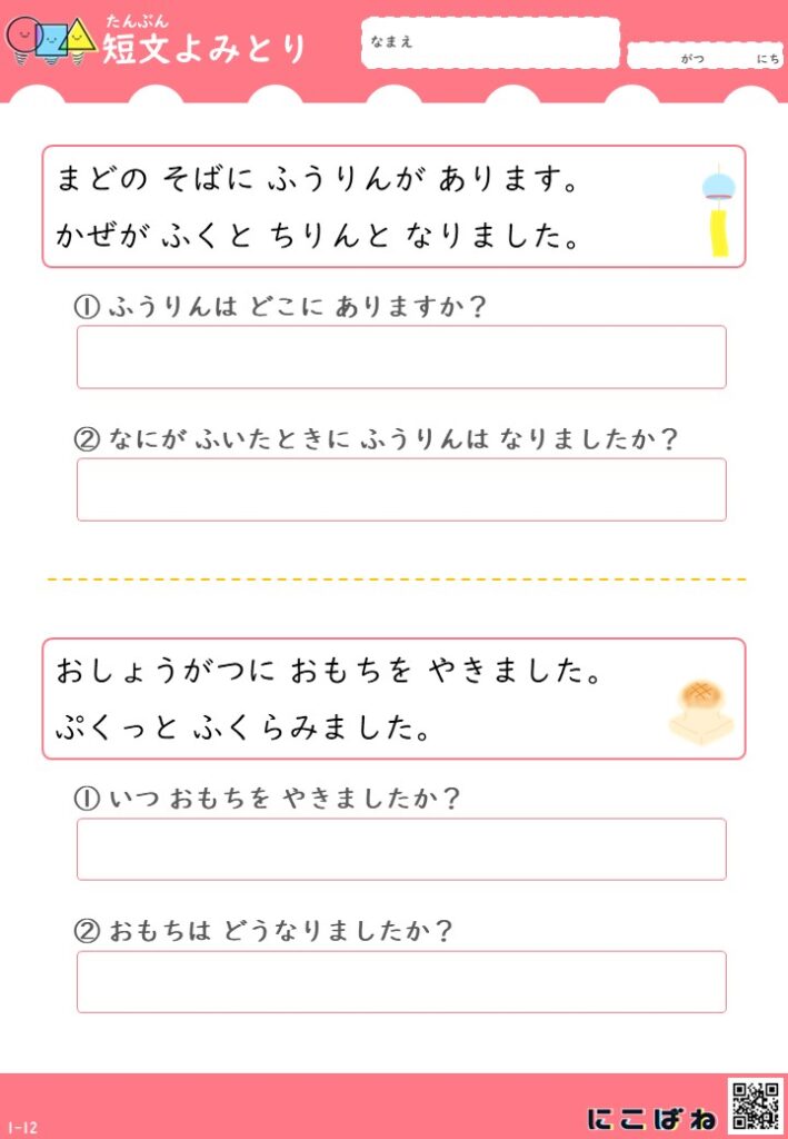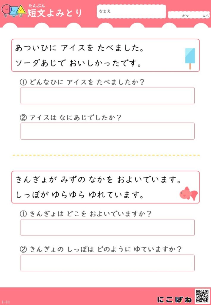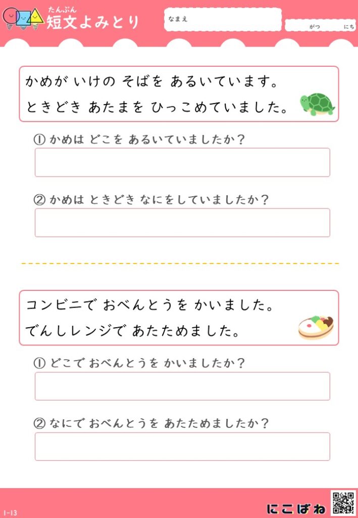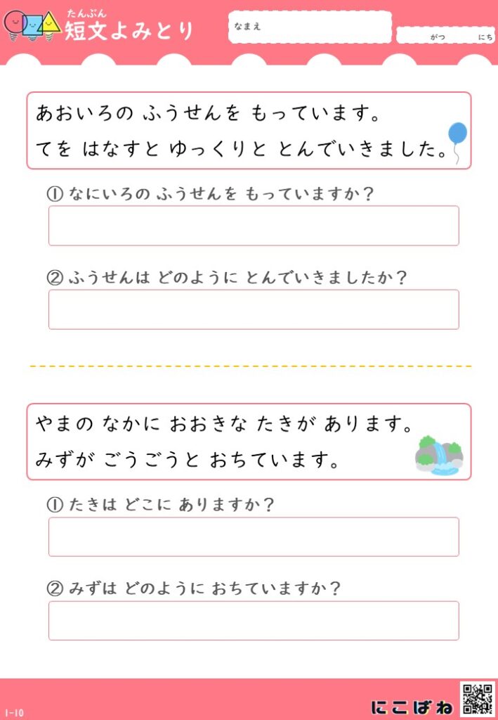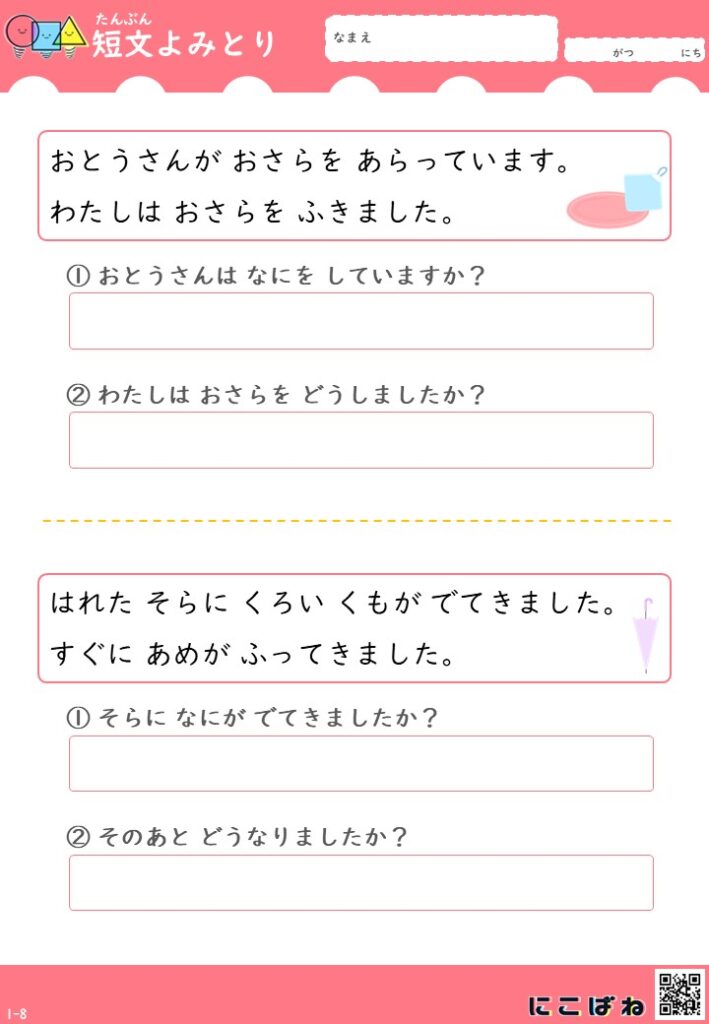 短文よみとり(2文バージョン)|小学1年生向け