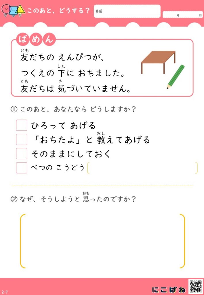 - 正解を一つに決めつけず、自分なりの行動を考えられる設計になっています。
