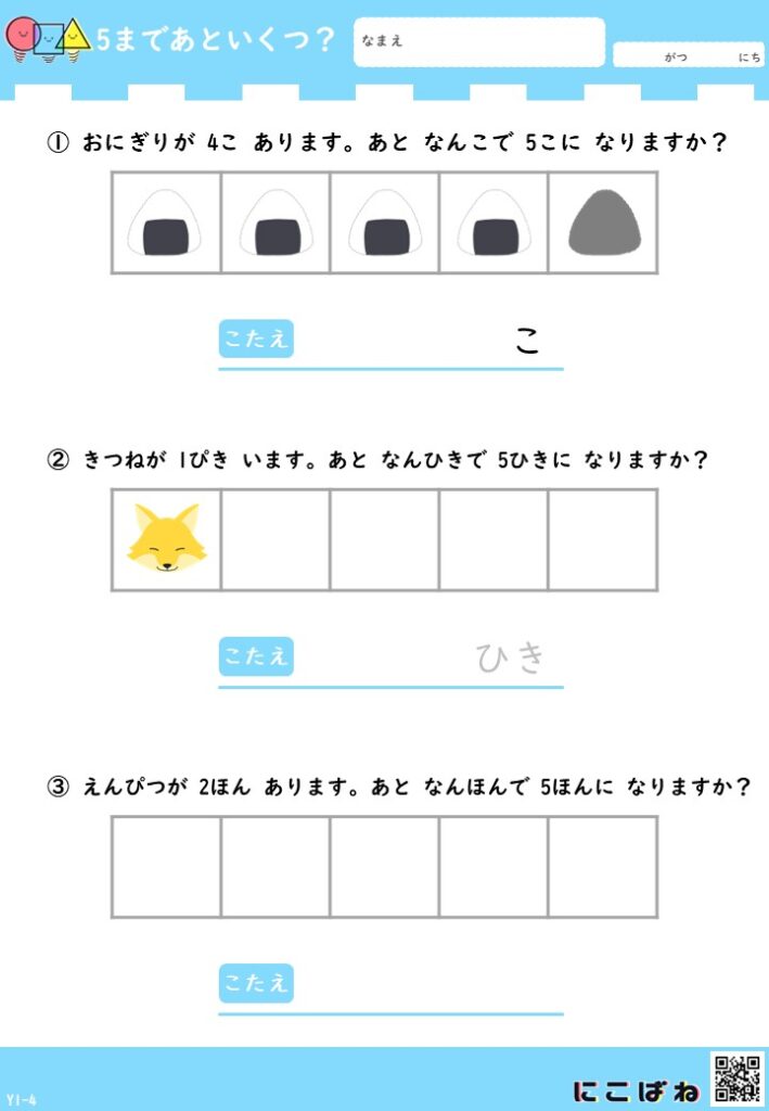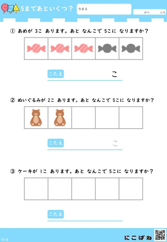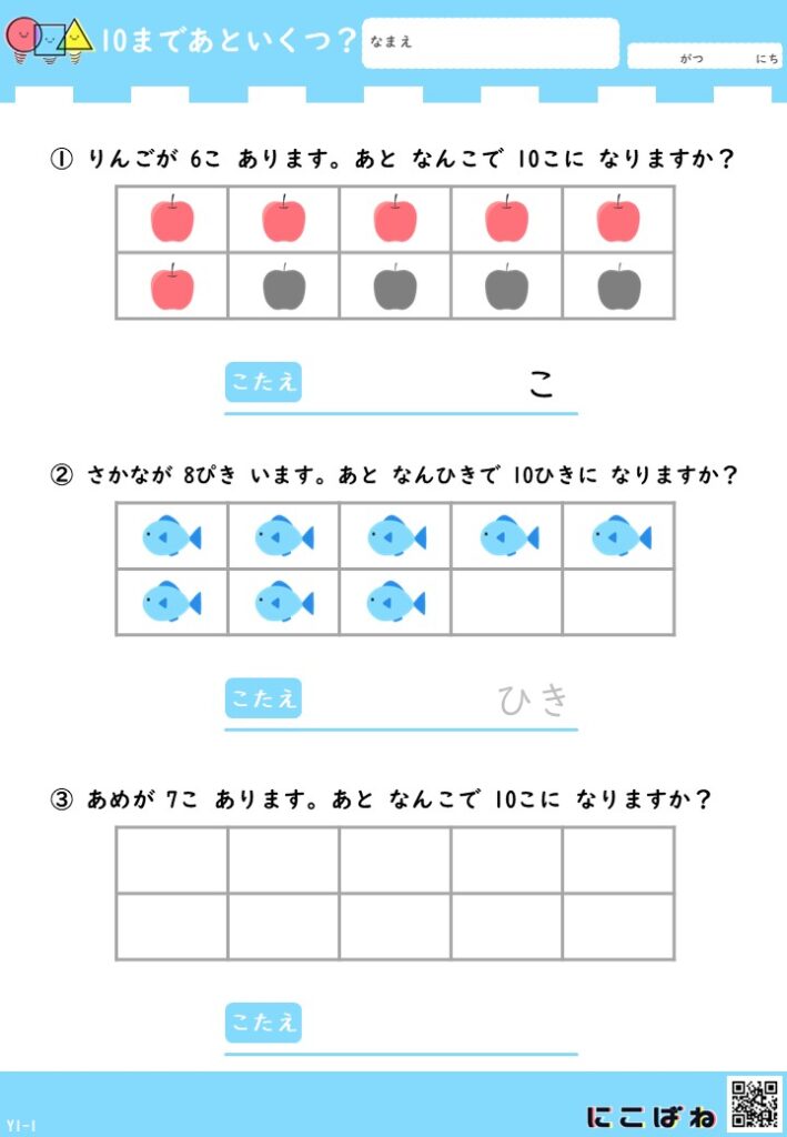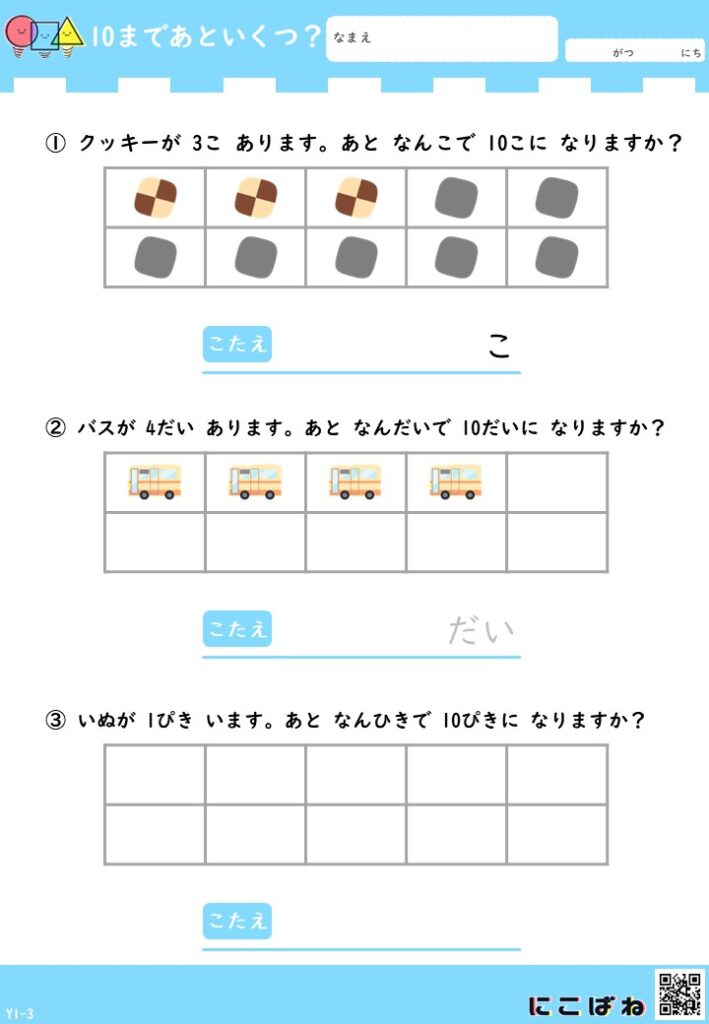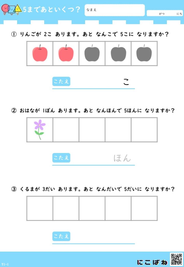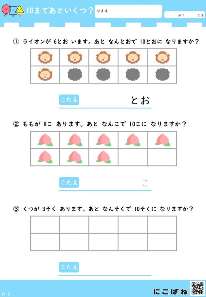 「あといくつ?」と考える楽しさを感じながら、数の理解を少しずつ広げていただけたらうれしいです。