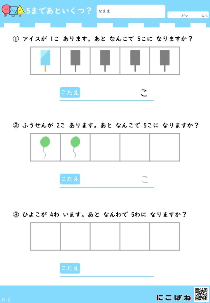 5まであといくつ?のプリントはこちら