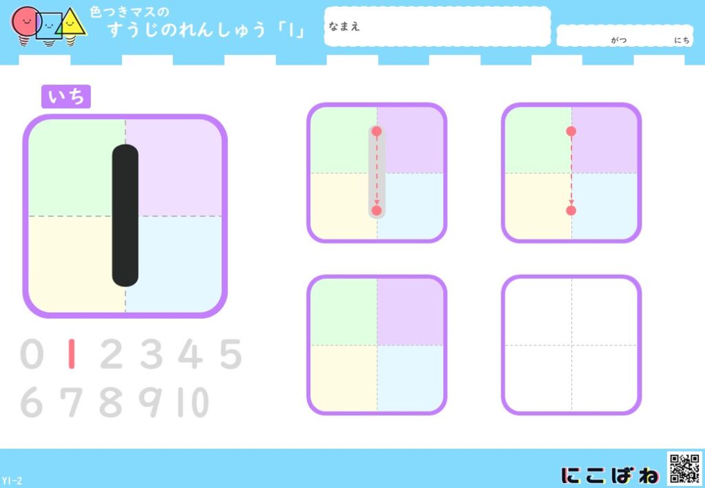 • 数字・マス・配色をシンプルにまとめ、はじめての数字練習でも取り組みやすいプリントです。