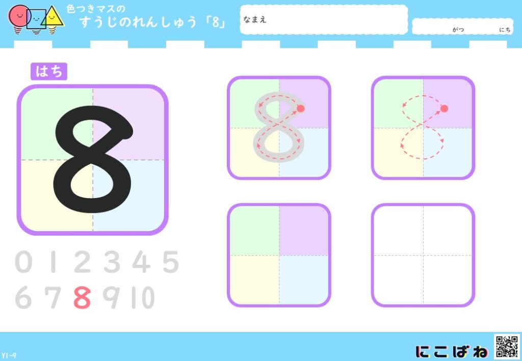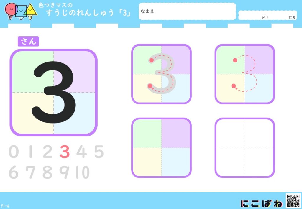 マスや配色もシンプルにまとめることで、はじめて数字を書くお子さまでも安心して使える内容に仕上げています。