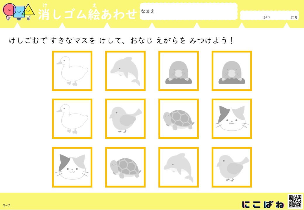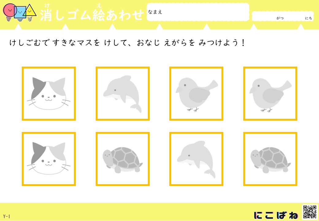 にこばねでは、そんな発達の段階に寄り添いながら、お子さまが思わず手をのばしたくなるような楽しいプリントを多数ご用意しています。
